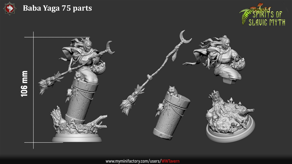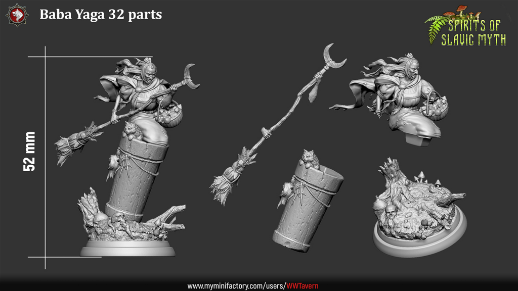 Unpainted resin 3d printed miniature Baba Yaga by White Werewolf Tavern.
