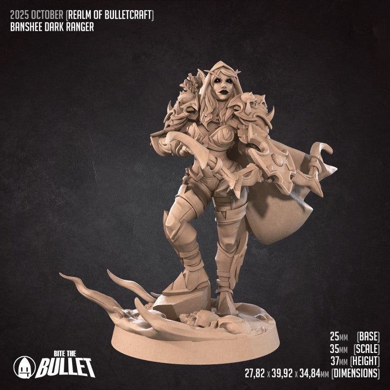 Unpainted resin 3d printed miniature Banshee Dark Ranger by Bite the Bullet.