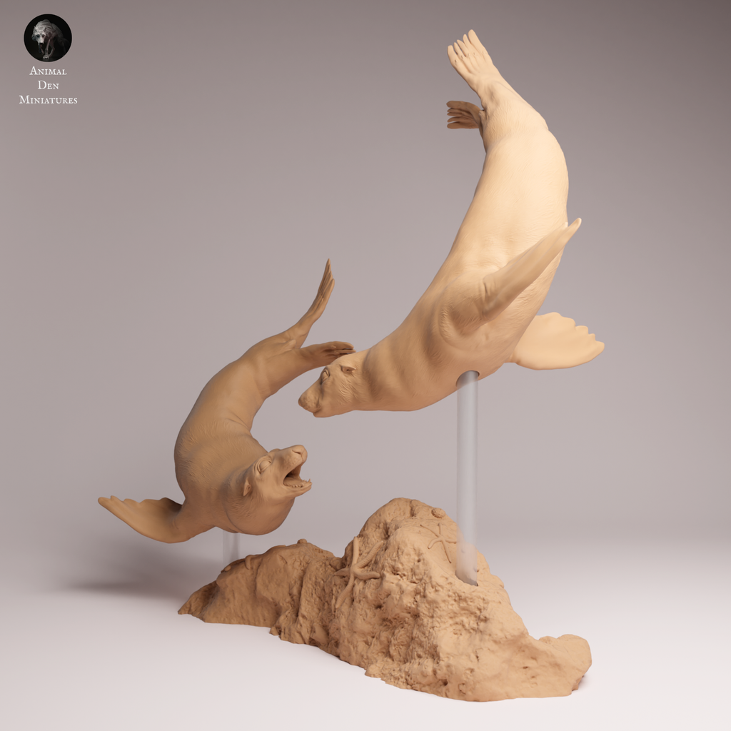 Unpainted resin 3d printed miniature Cape Fur Seal by Animal Den.