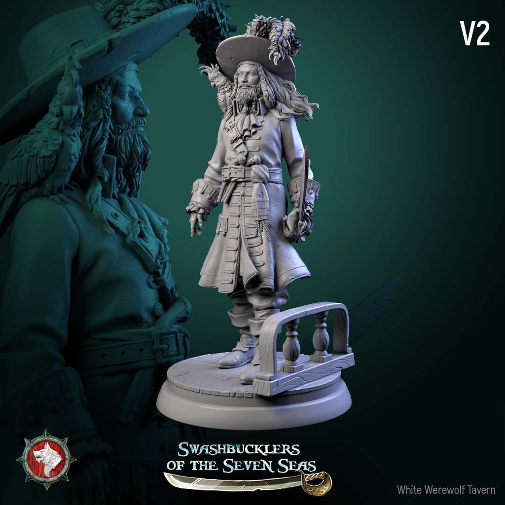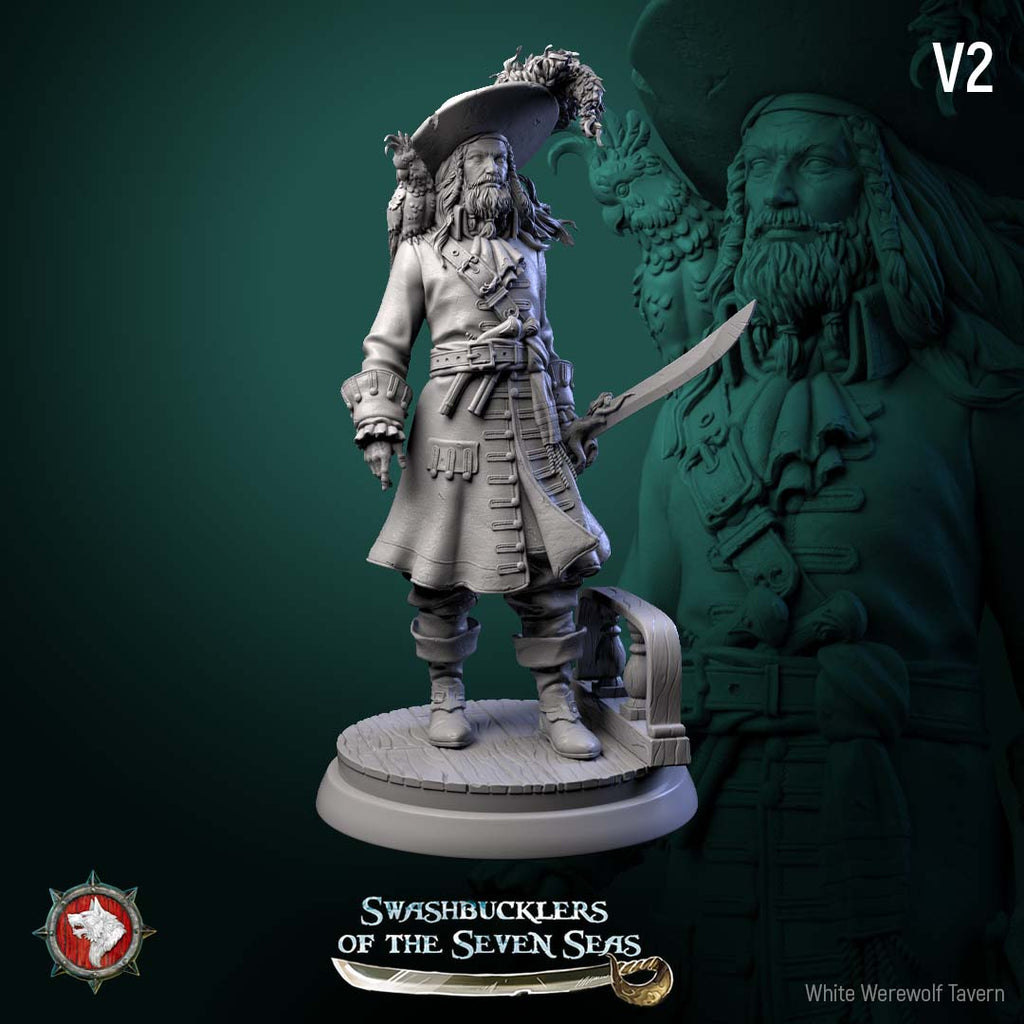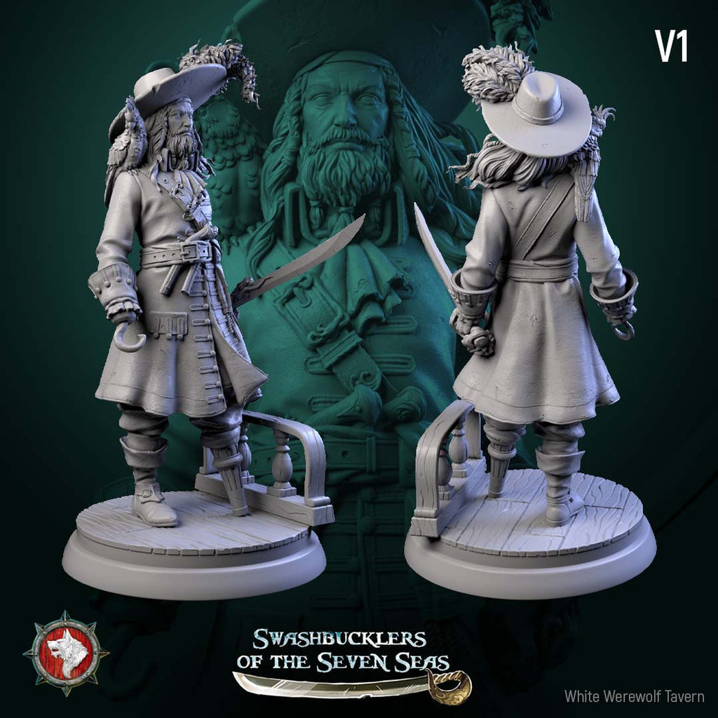 Unpainted resin 3d printed miniature Captain Aurelius Drake by White Werewolf Tavern.