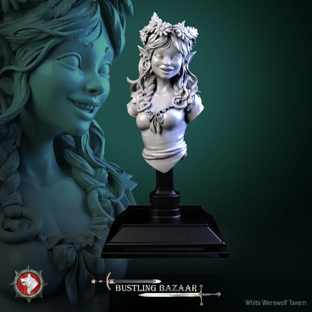 Unpainted resin 3d printed miniature Clover Mossroot by White Werewolf Tavern.