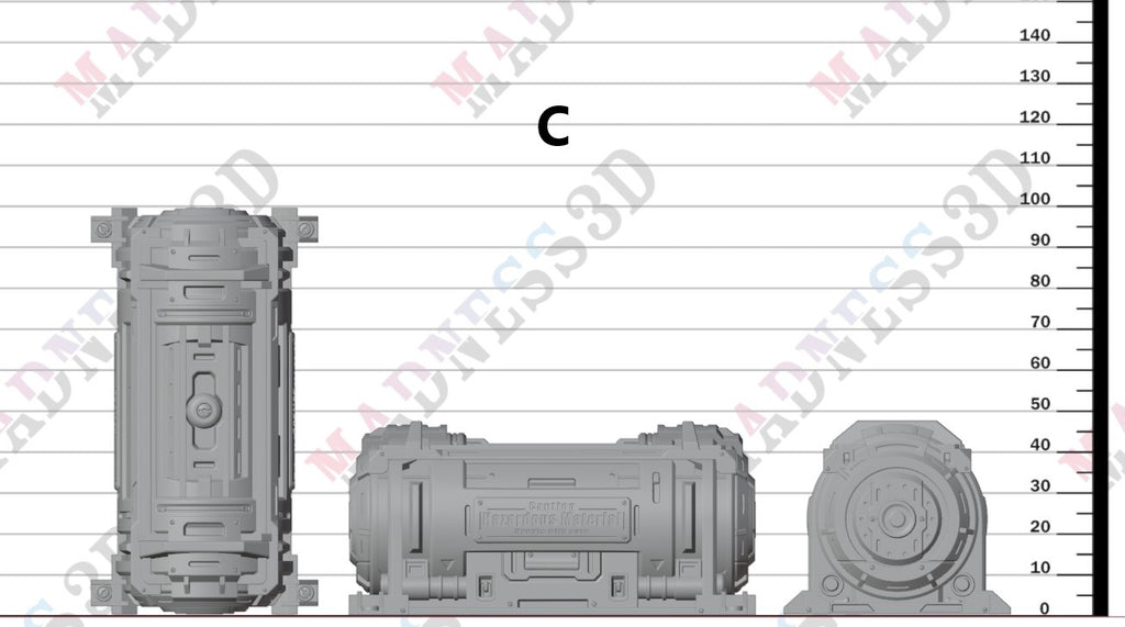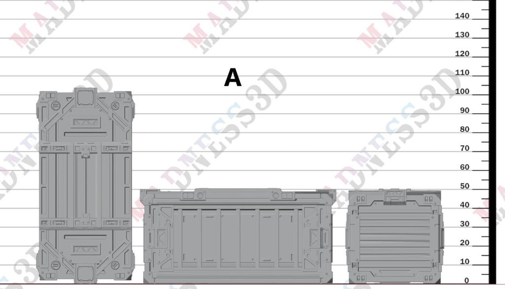 Unpainted resin 3d printed miniature Containers by Cast n Play.