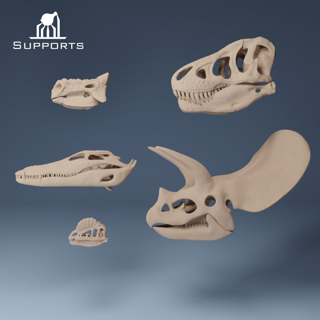 Unpainted Resin 3d printed Miniature Dinosaur Skulls by The King of Bits.