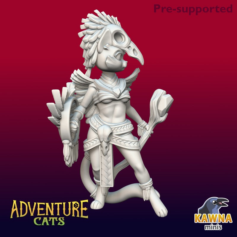 Unpainted resin 3d printed miniature Druid Cat designed by The Kawna