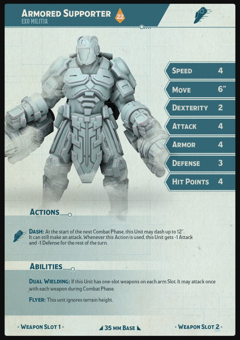 Unpainted resin 3d printed miniature Exo - Armoured Supporters by Cast n Play.
