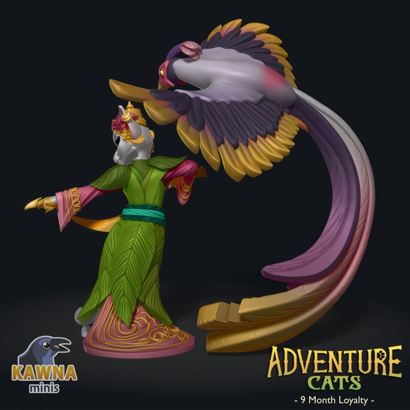 Unpainted resin 3d printed miniature Guardian Meowlia Moonpaw & Duskwing designed by The Kawna