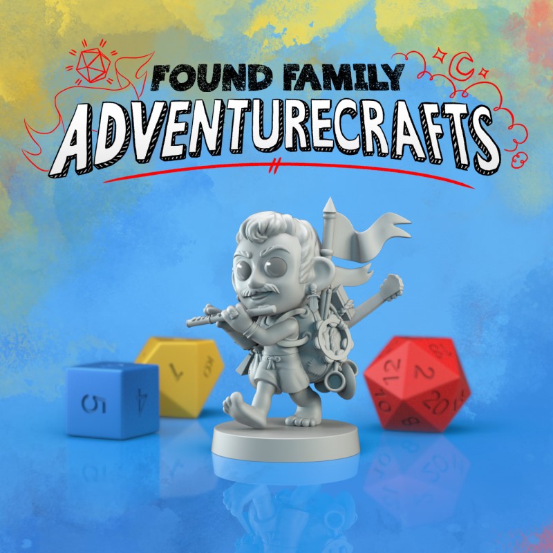 Unpainted resin 3d printed Miniature Halfling Bard by Found Family Adventurecraft.