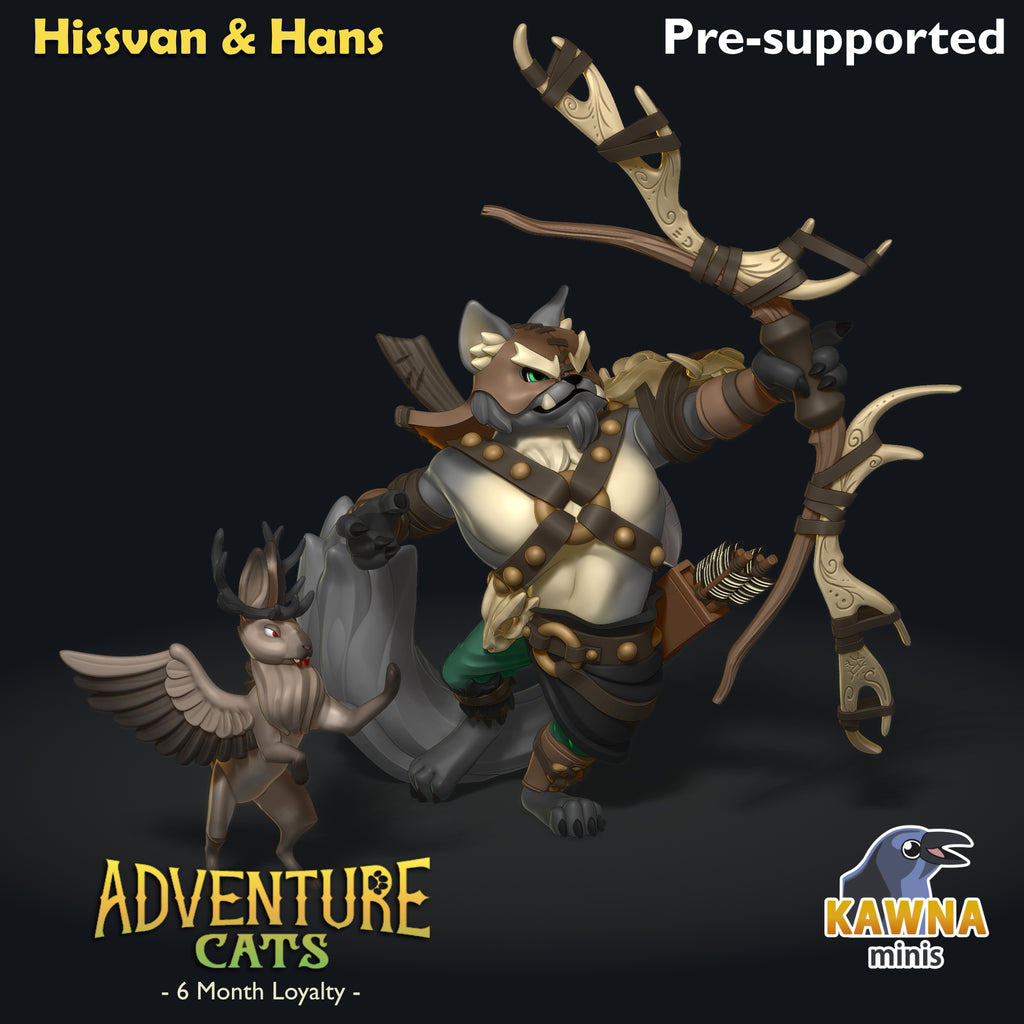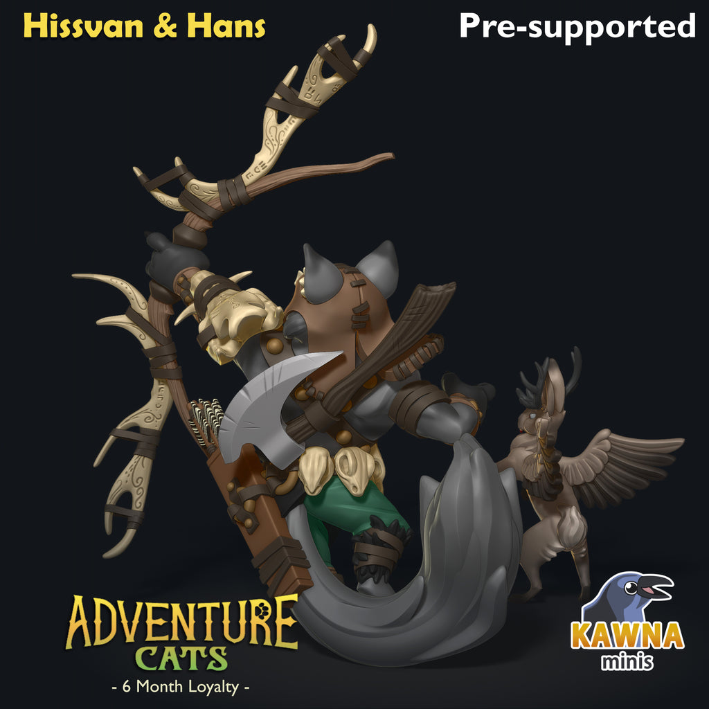 Unpainted resin 3d printed miniature Hissvan & Hans designed by The Kawna