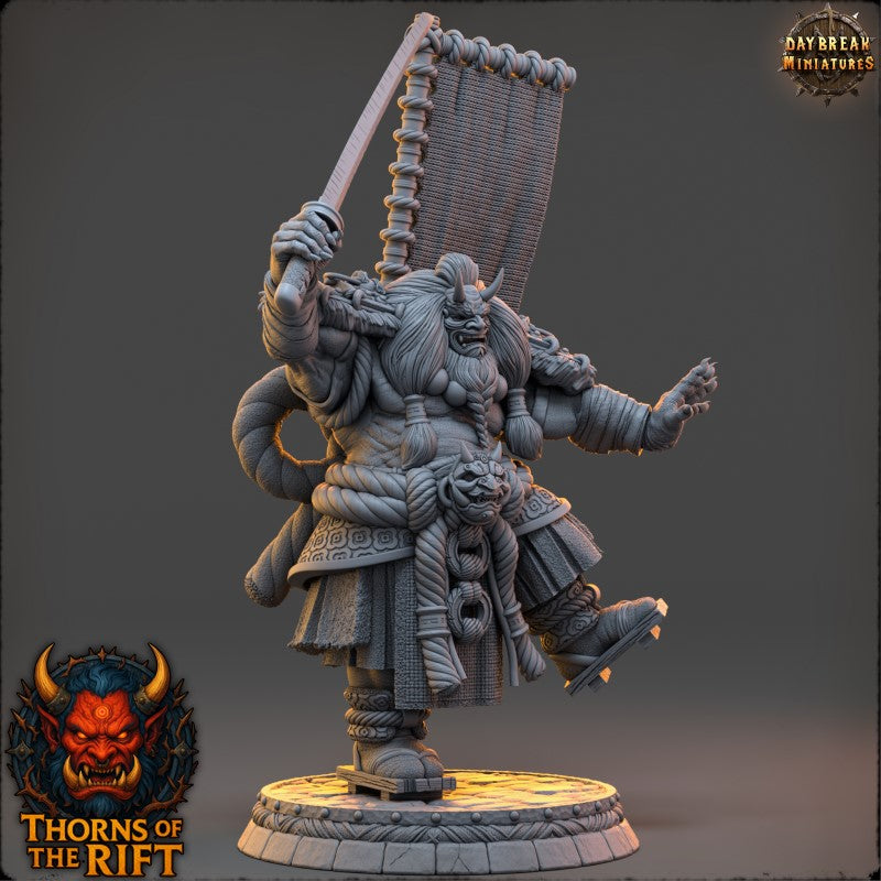 Unpainted resin 3d printed miniature Hōnō-hata by Daybreak Miniatures.