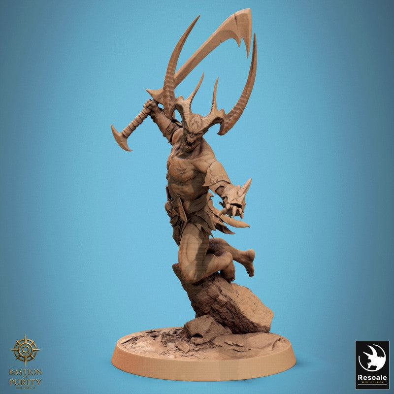 Unpainted resin 3d printed Miniature Horned Blade by Rescale Miniatures.