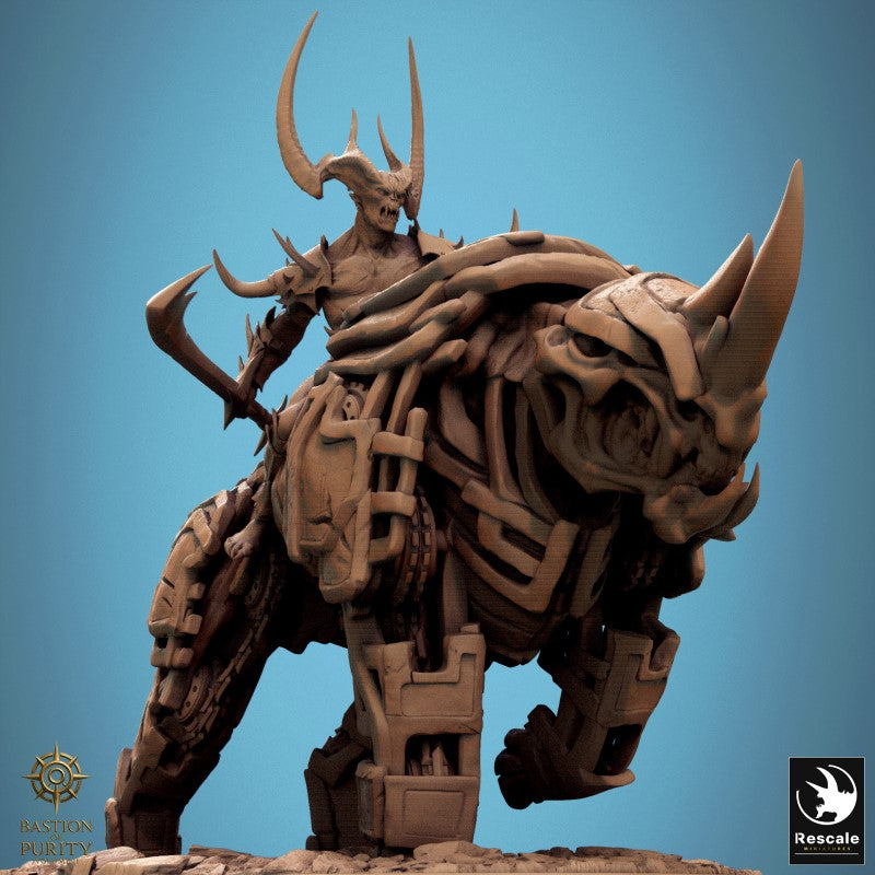 Unpainted resin 3d printed Miniature Iron Hellrider by Rescale Miniatures.