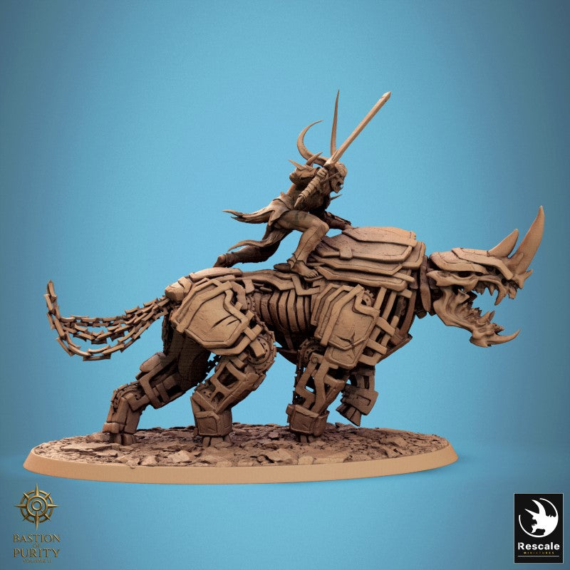 Unpainted resin 3d printed Miniature Iron Hellrider by Rescale Miniatures.