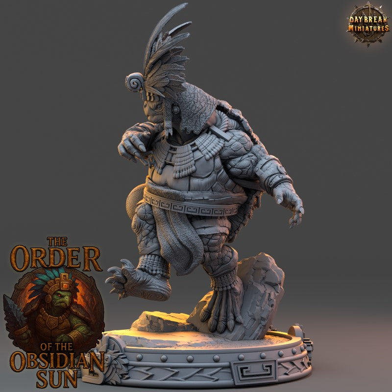 Unpainted resin 3d printed miniature Mazotl Stonehide by Daybreak Miniatures.