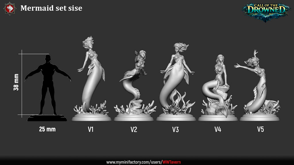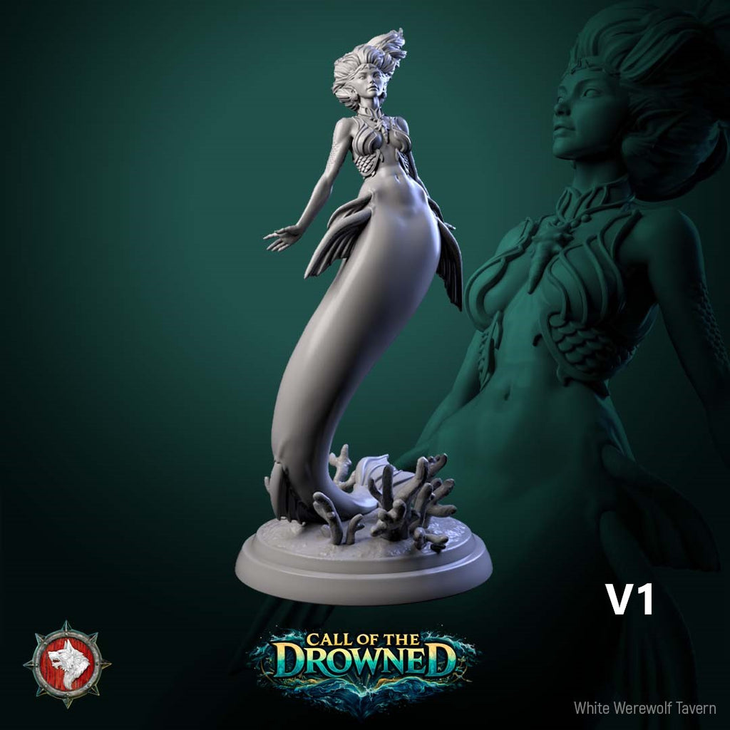 Unpainted resin 3d printed miniature Mermaid by White Werewolf Tavern.