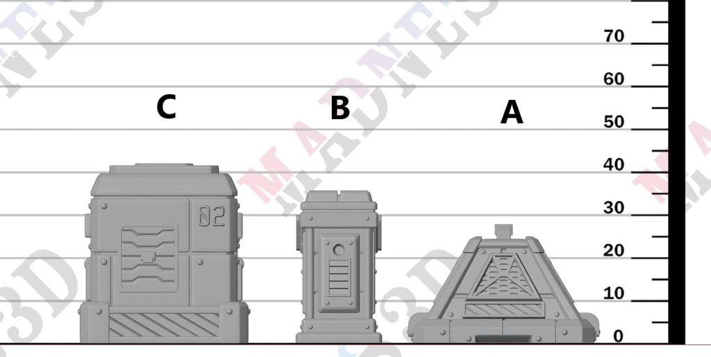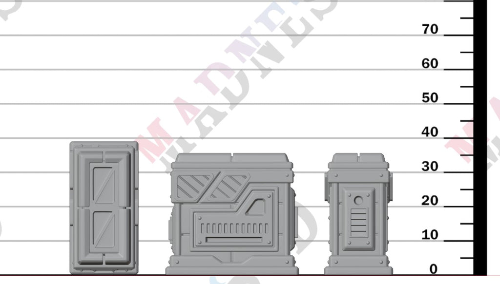 Unpainted resin 3d printed miniature Metal Crates by Cast n Play.
