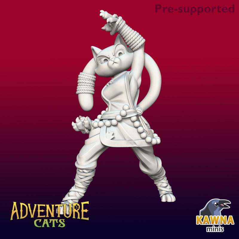 Unpainted resin 3d printed miniature Monk Cat designed by The Kawna