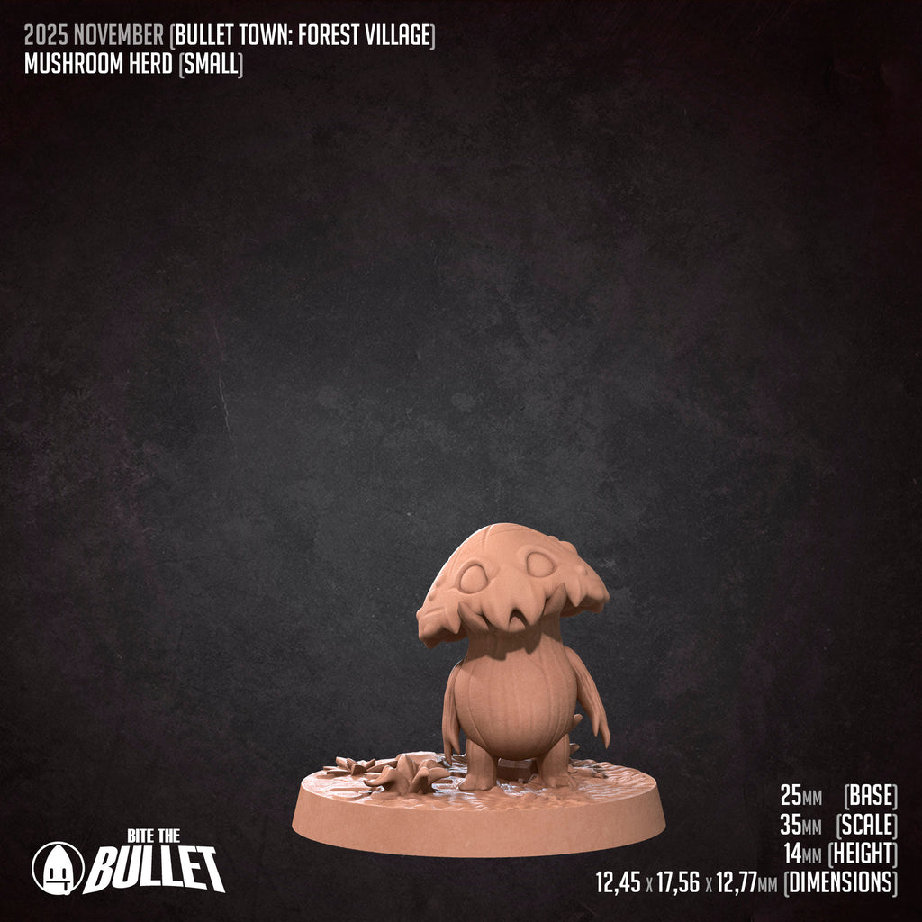 Unpainted resin 3d printed Miniature Mushroom Herd by Bite the Bullet.