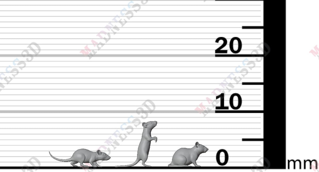 Unpainted Resin 3d printed Miniature Rats by The King of Bits.