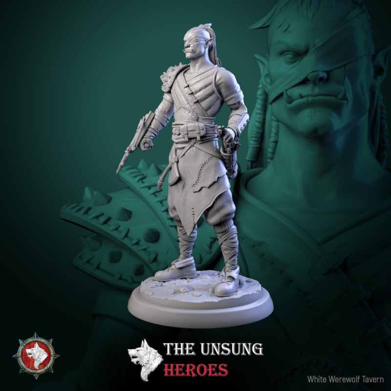 Unpainted resin 3d printed Miniature Roadside Bandit by White Werewolf Tavern.