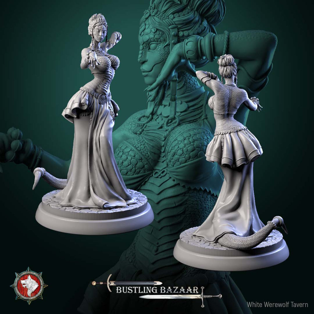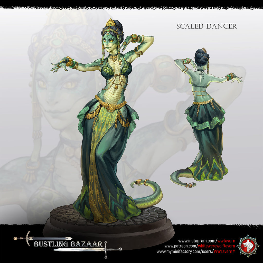 Unpainted resin 3d printed miniature Scaled Dancers by White Werewolf Tavern.