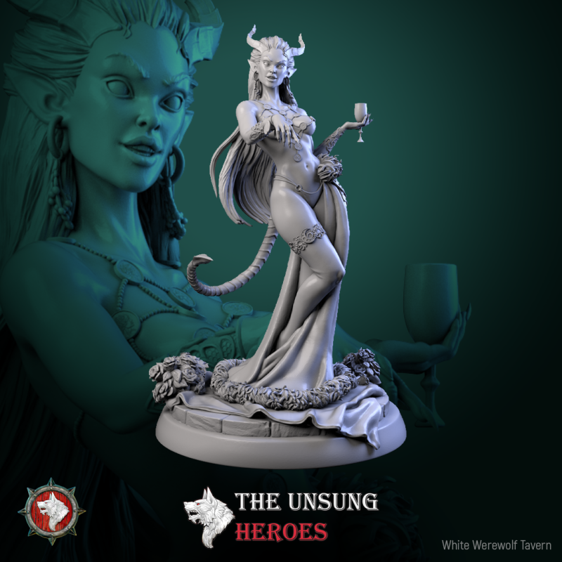 Unpainted resin 3d printed Miniature Scarlet Emberlin by White Werewolf Tavern.