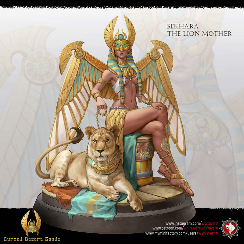 Unpainted resin 3d printed Miniature Sekhara The Lion Mother by White Werewolf Tavern.