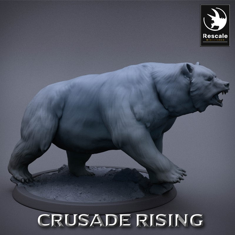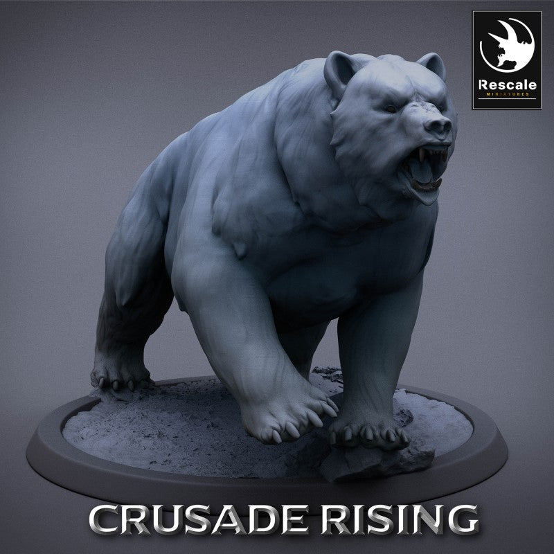 Unpainted resin 3d printed miniature Templar Bear sculpted by Rescale Miniatures.