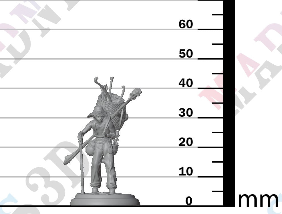Unpainted resin 3d printed Miniature Thatch Greenfield - The Traveling Merchant by White Werewolf Tavern.