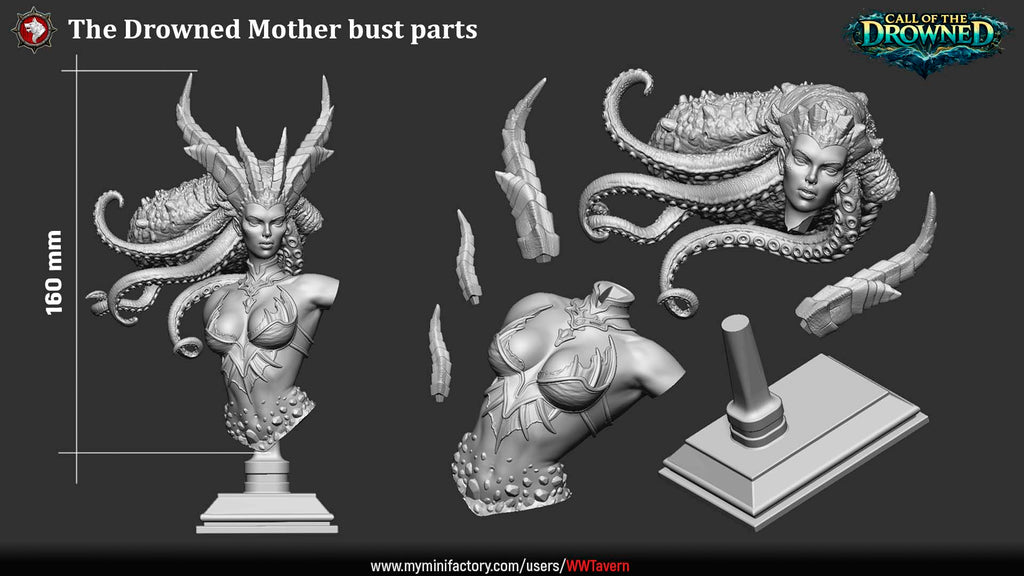 Unpainted resin 3d printed miniature The Drowned Mother by White Werewolf Tavern.