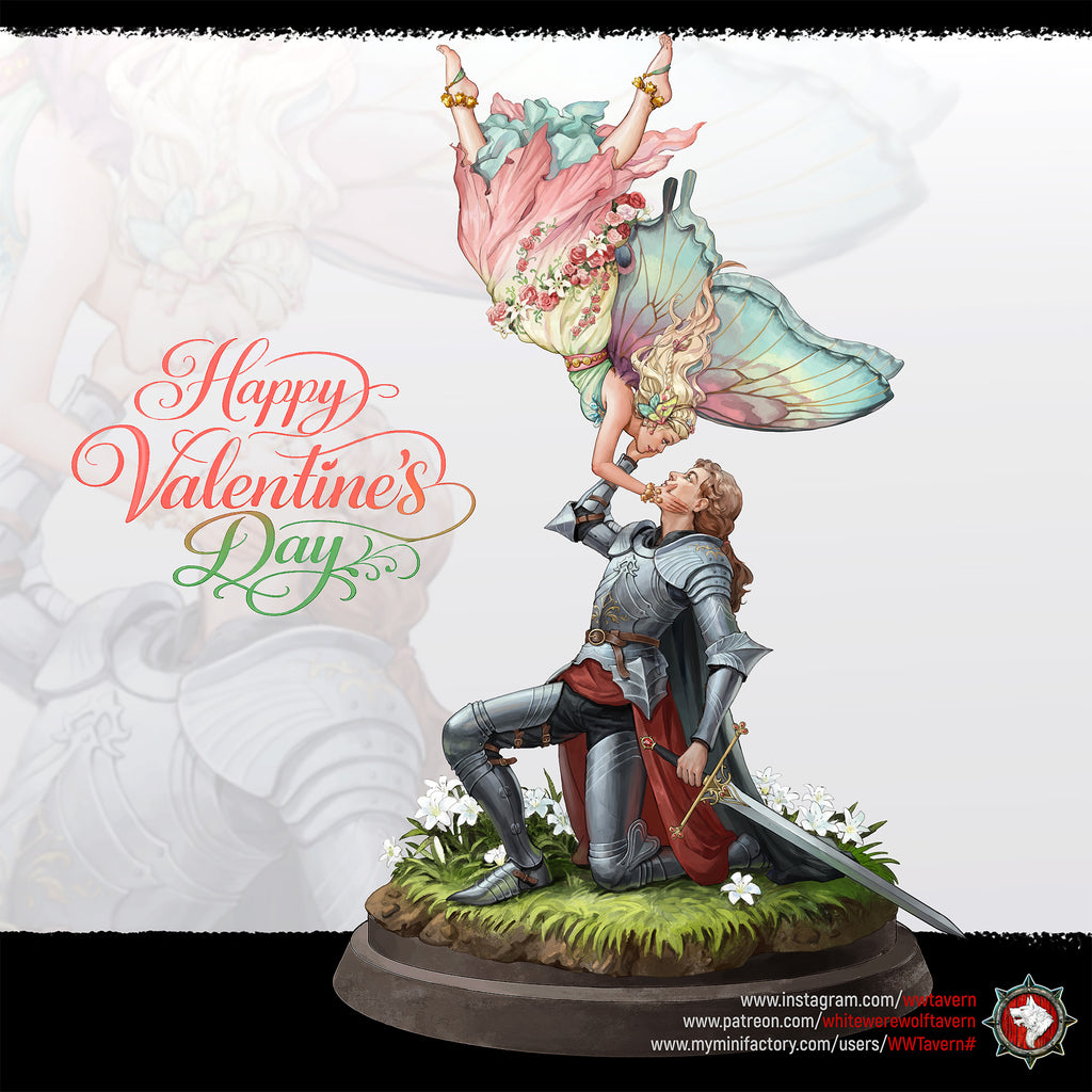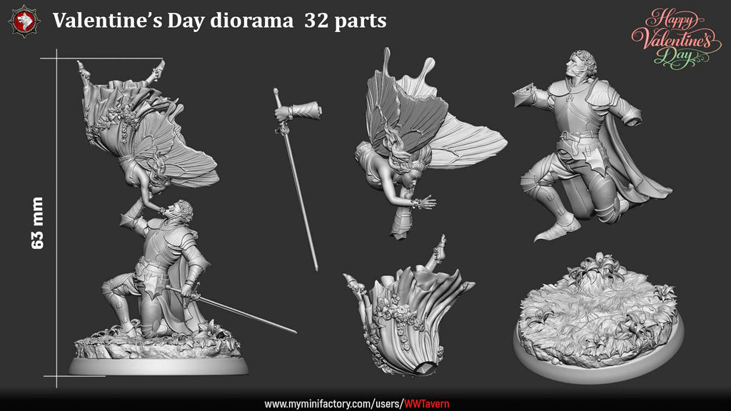 Unpainted resin 3d printed miniature Valentine's Day Diorama by White Werewolf Tavern.