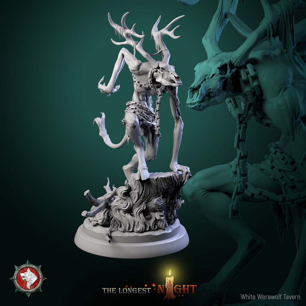 Unpainted resin 3d printed miniature Wendigo by White Werewolf Tavern.