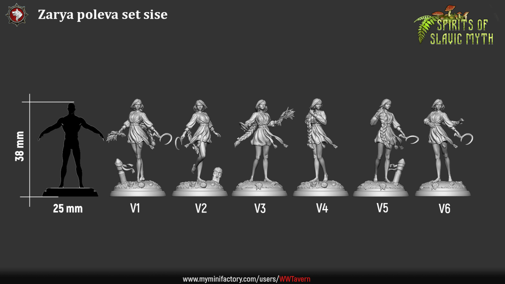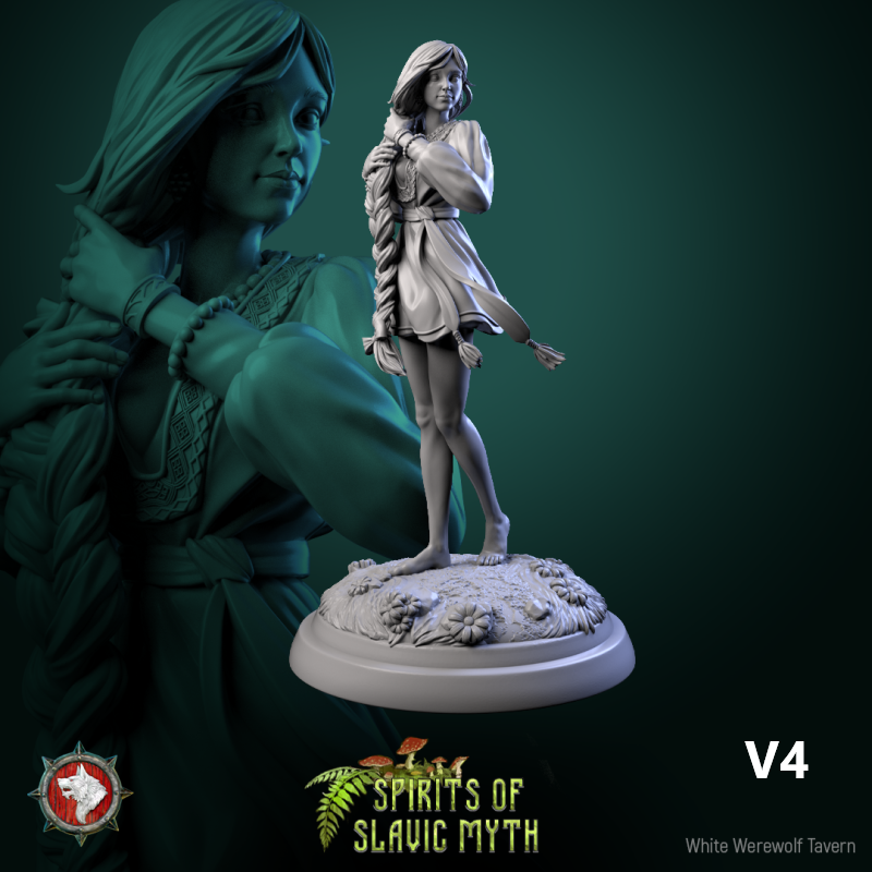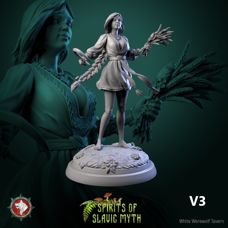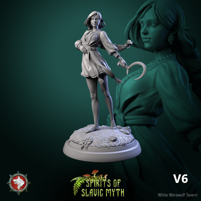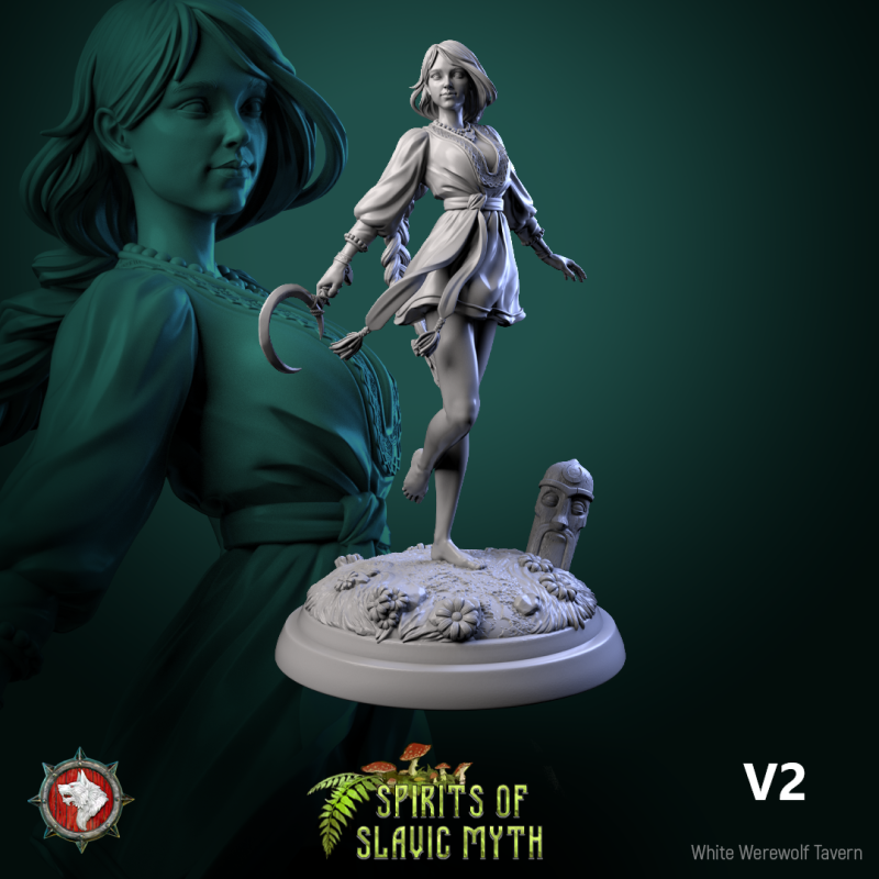 Unpainted resin 3d printed miniature Zarya Poleva by White Werewolf Tavern.