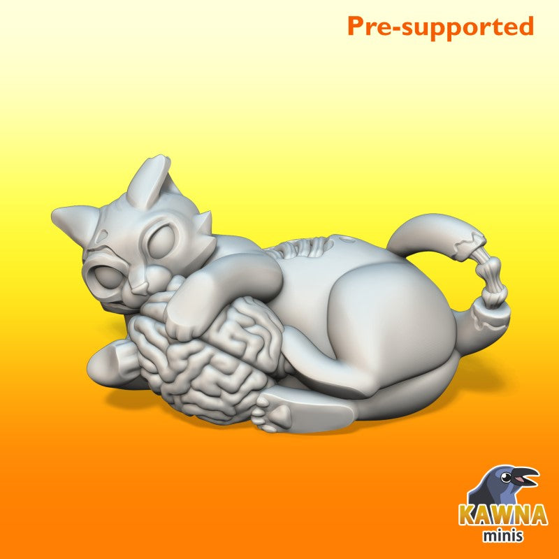 Unpainted resin 3d printed Miniature Zombie Cat by The Kawna.